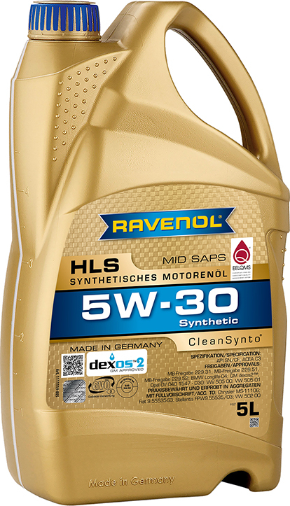 Синтетическое среднезольное (Mid SAPS) легкотекучее моторное масло для легковых бензиновых и дизельных моторов. Синтетическое моторное масло RAVENOL HLS 5W-30 подходит для дизельных двигателей с сажевыми DPF фильтрами.
