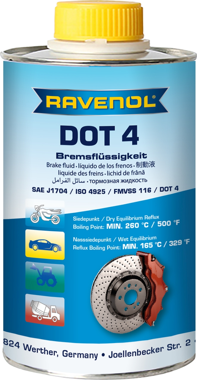 Тормозная жидкость RAVENOL DOT 4 предназначена для применения в тормозных системах автомобилей, требующих уровня качества FMVSS.