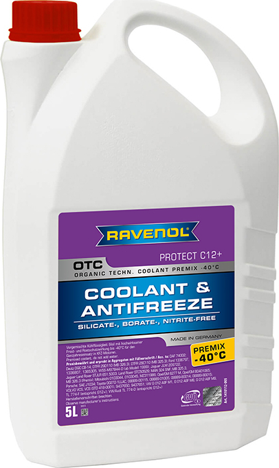 Красный готовый антифриз RAVENOL OTC Protect C12+ Premix -40C соответствует стандарту G12+ и обеспечивает долговременную защиту алюминиевого двигателя как зимой, так и летом.