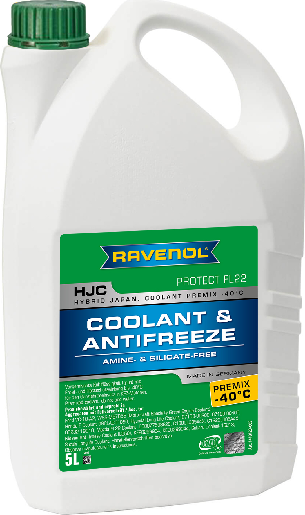 Готовый антифриз зеленого цвета на основе этиленгликоля, соответствующий требованиям Mazda FL22. Подходит для большинства японских автомобилей.