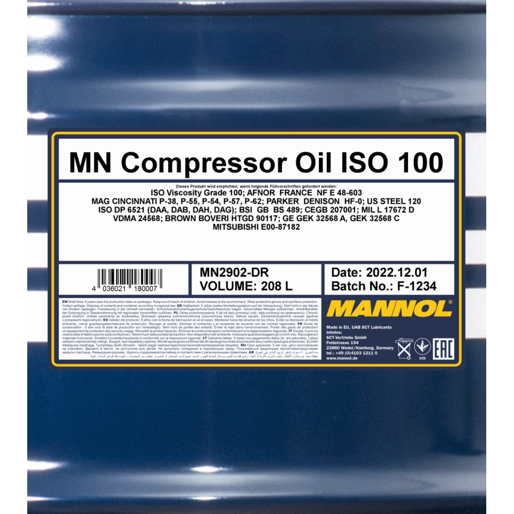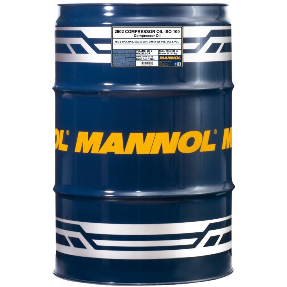 Компрессорное масло MANNOL 2902 Compressor Oil ISO 100, 208л