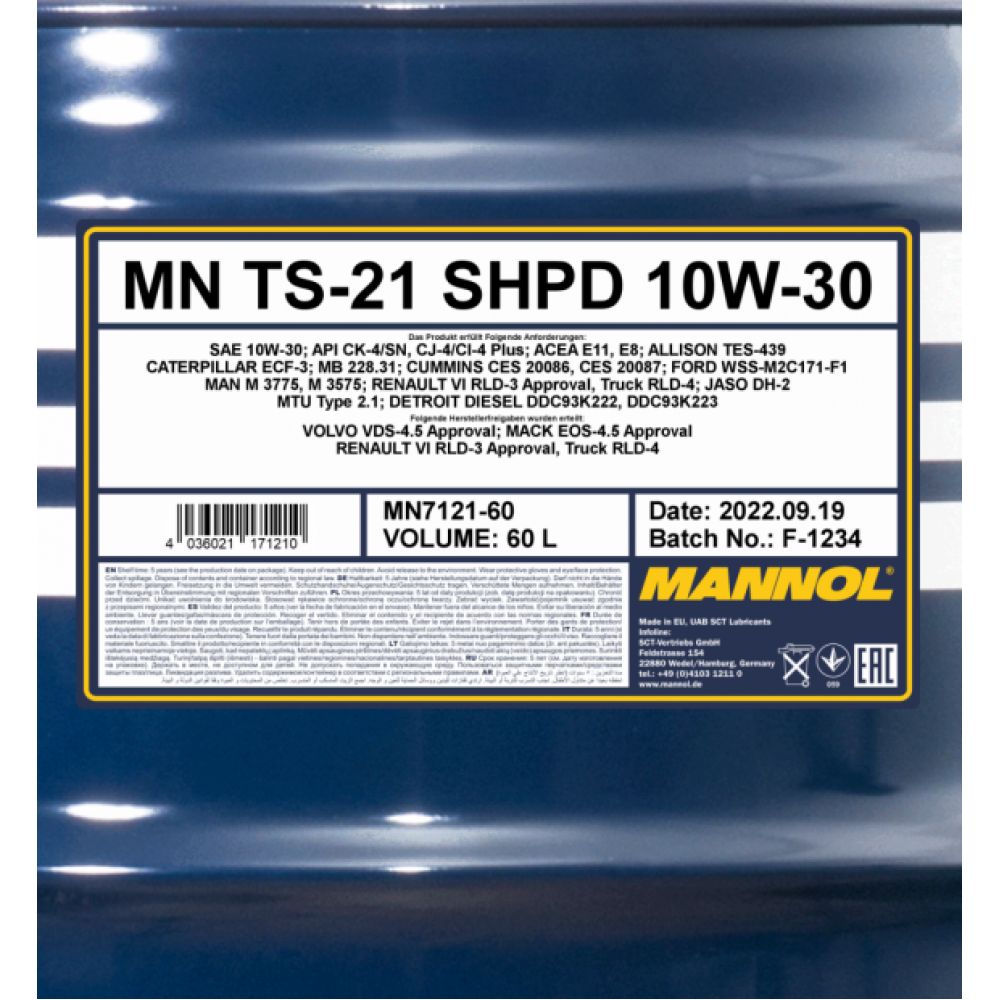 Моторное масло MANNOL 7121 TS-21 SHPD 10W-30, 60л