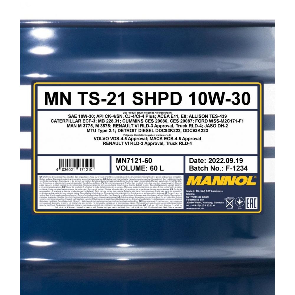 Моторное масло MANNOL 7123 TS-23 UHPD 5W-30, 60л