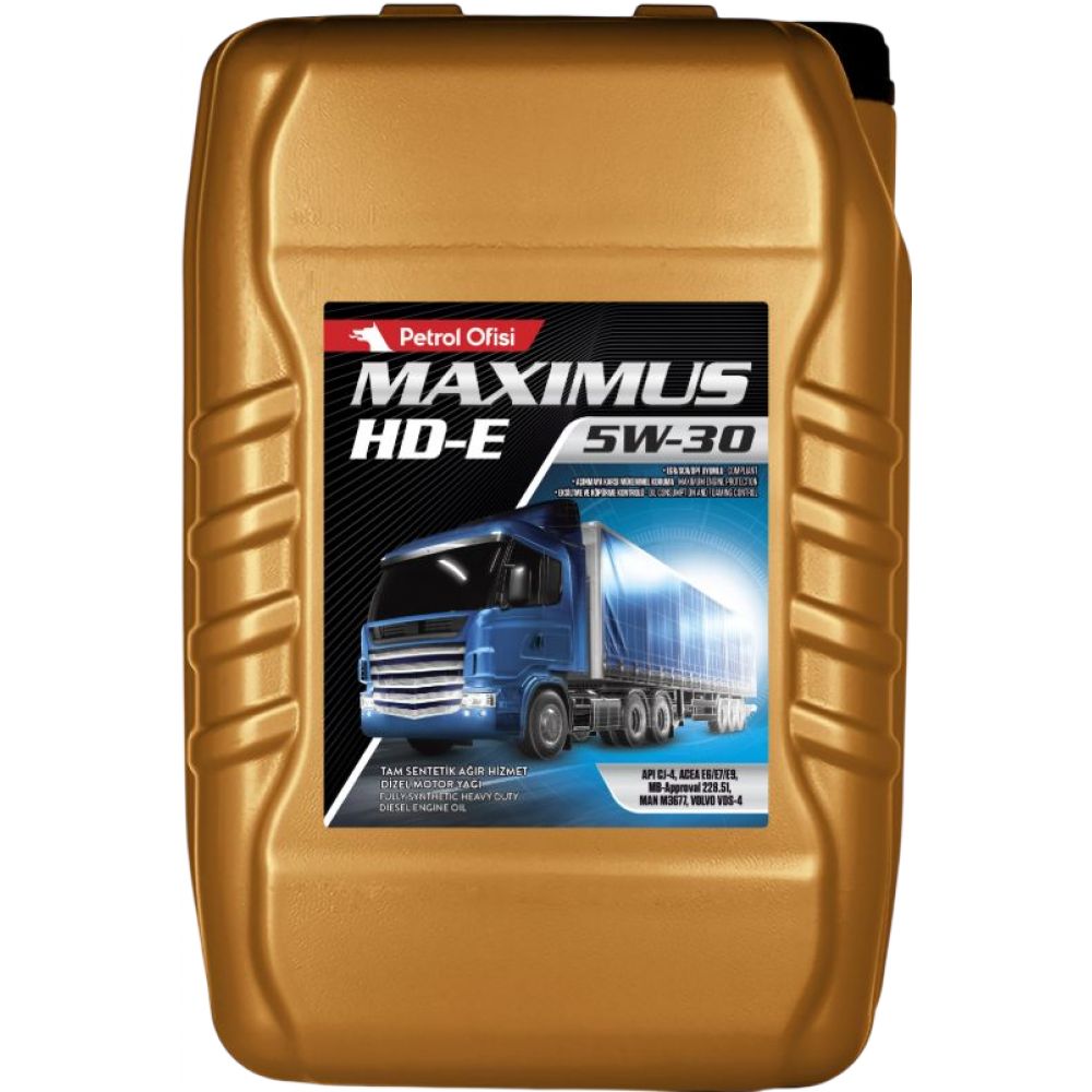 Petrol Ofisi MAXIMUS HD-E 5W-30 - полностью синтетическое моторное масло на основе базовых масел премиального класса и пакета присадок, созданного с использованием передовых технологий в области производства смазочных материалов. Предназначено для двигателей автомобилей, соответствующих уровню экологических стандартов Euro 5 и Euro 6.