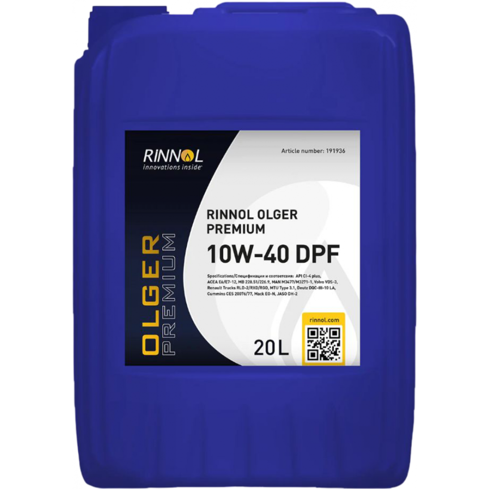 Моторное масло RINNOL OLGER PREMIUM 10W-40 DPF, 20л