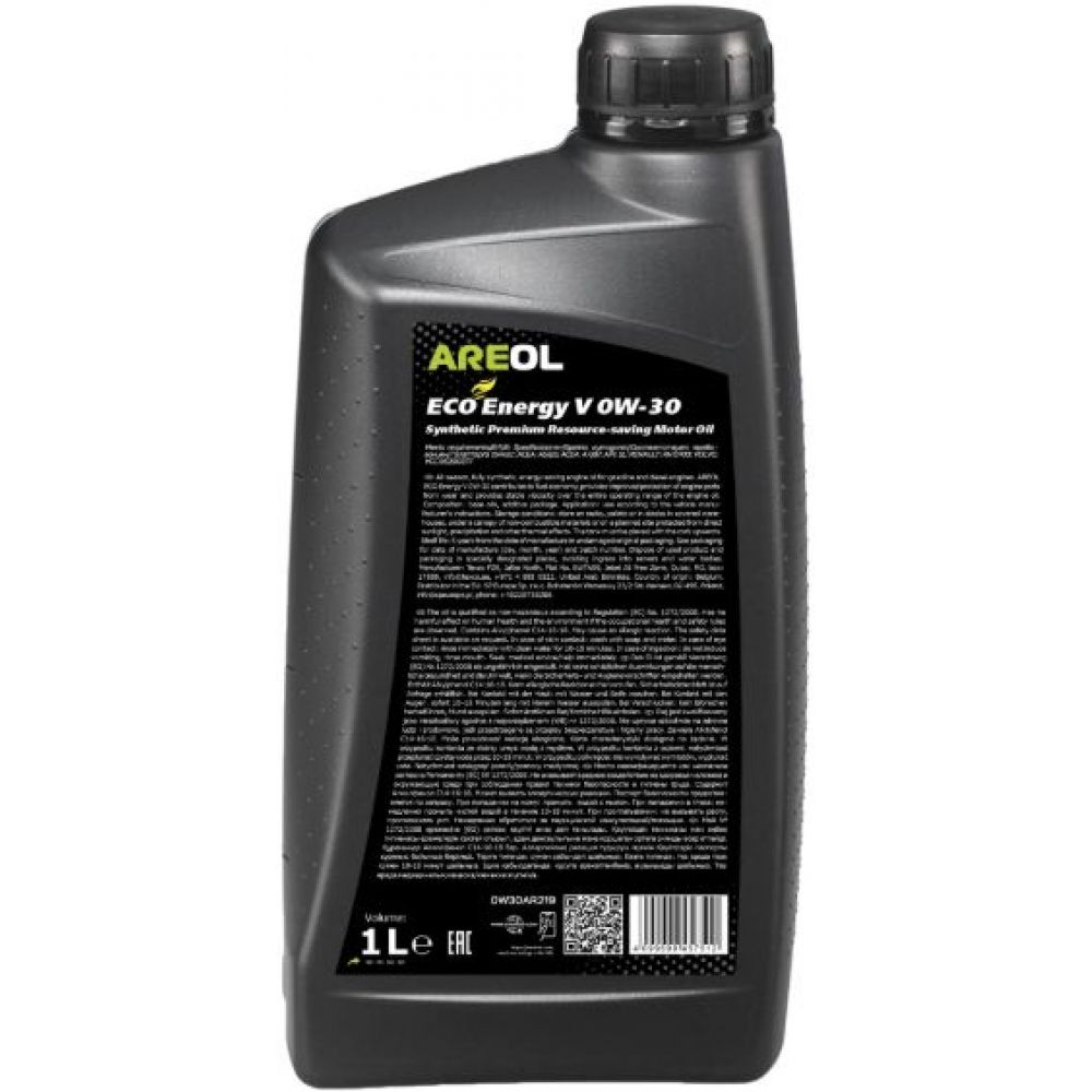AREOL ECO Energy V 0W-30 - всесезонное полностью синтетическое энергосберегающее моторное масло, изготовленное на основе тщательно отобранных высококачественных базовых масел. AREOL ECO Energy V 0W-30 способствует экономии топлива, обеспечивает улушченную защиту деталей двигателя от износа и стабильную вязкость на всем интервале работы моторного масла.