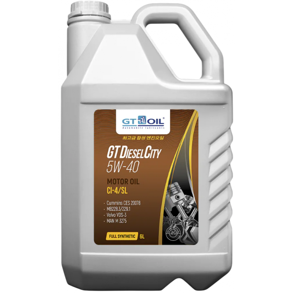 GT OIL GT Diesel City 5W-40 - универсальное моторное масло всесезонного применения, обеспечивающее превосходные рабочие характеристики при любых условиях эксплуатации двигателей класса SHPD (Super High Perfomance Diesel). Формула масла GT Diesel City разработана по уникальной технологии на основе синтетических базовых масел в сочетании с комплексом высокоэффективных присадок, обеспечивающих отличные низкотемпературные характеристики. Обеспечивает оптимальную толщину масляной пленки, которая создает дополнительную защиту двигателя от износа при сверхтяжелых условиях эксплуатации и позволяет экономить топливо без ущерба защиты двигателя от износа.
