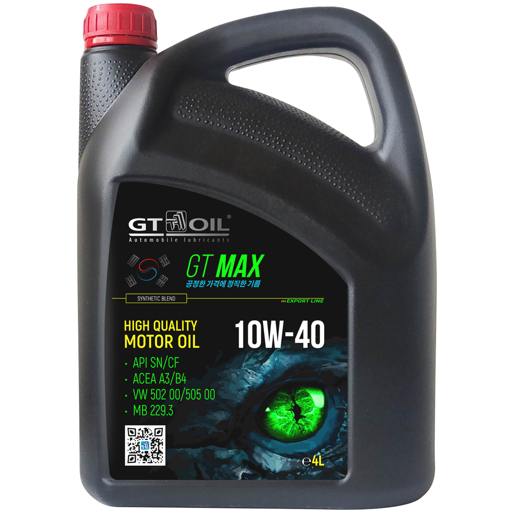GT OIL GT Max 10W-40 SN/CF - высококачественное полусинтетическое моторное масло для современных высокофорсированных бензиновых и дизельных двигателей (с турбонаддувом и без) легковых автомобилей, внедорожников, микроавтобусов и легких грузовиков. Максимальная защита двигателя от износа в жестких условиях городского цикла и в условиях повышенных нагрузок. Высокое содержание нейтрализующих присадок позволяет использовать топливо с повышенным содержанием серы (до 500 ppm). Рекомендовано к всесезонному применению в бензиновых и дизельных двигателях (без фильтров сажевых частиц - DPF) автомобилей Mercedes-Benz, BMW, Audi, Volkswagen, Skoda, Porsche, Hyundai, KIA, Toyota, Honda, Nissan, Mitsubishi, Renault, Peugeot, Citroen, FIAT.
