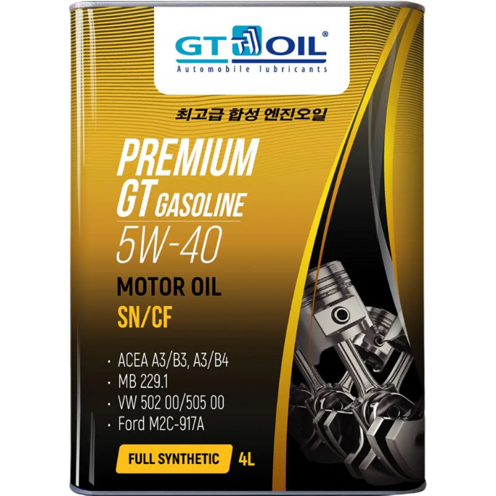 GT OIL Premium GT Gasoline 5W-40 SN SM/CF - высококачественное моторное масло для бензиновых двигателей. Формула разработана на основе первоклассных гидрокрекинговых базовых масел III группы с очень высоким индексом вязкости в сочетании с высокоэффективным пакетом присадок. Обладает высокой стабильностью вязкостных характеристик в течение всего срока эксплуатации, поддерживая мощность и приёмистость двигателя. Обеспечивает увеличенный срок замены – помогает двигателям поддерживать максимальную производительность в течение более долгого периода времени, обеспечивая при этом повышенную износоустойчивость. Защищает от высокотемпературных отложений и шлама, имеет низкую испаряемость и отличные характеристики текучести при низких температурах по сравнению с обычными моторными маслами. Гарантирует улучшенную защиту высокофорсированных двигателей.