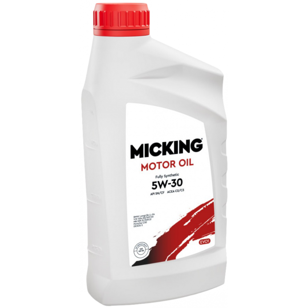 MICKING Motor Oil EVO1 5W-30 SN/CF C2/C3 - полностью синтетическое моторное масло для бензиновых и дизельных двигателей легковых и грузовых автомобилей, в том числе оборудованных турбонаддувом.