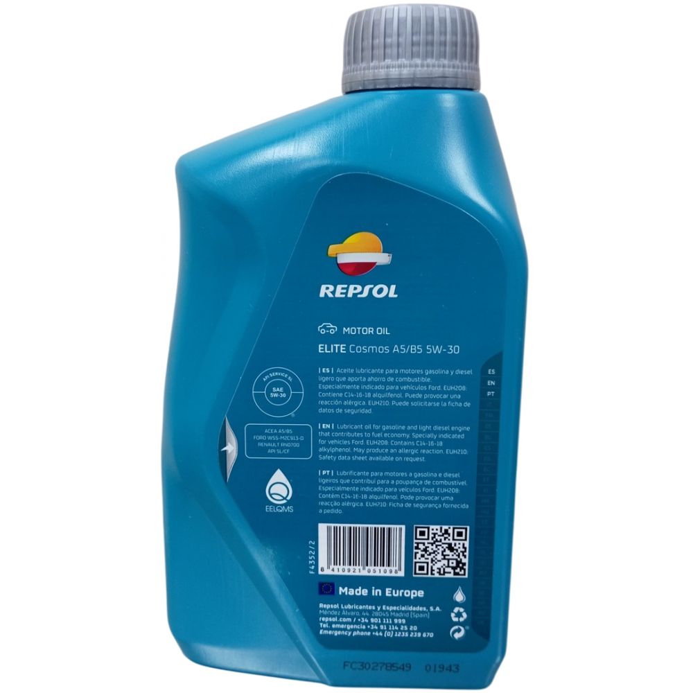 REPSOL RP ELITE COSMOS A5/B5 5W-30 - синтетическое моторное масло для самых технологичных бензиновых и дизельных двигателей легковых автомобилей. Характерной особенностью продукта является его значительный вклад в экономию топлива и снижение выбросов CO2 при нормальных условиях эксплуатации.