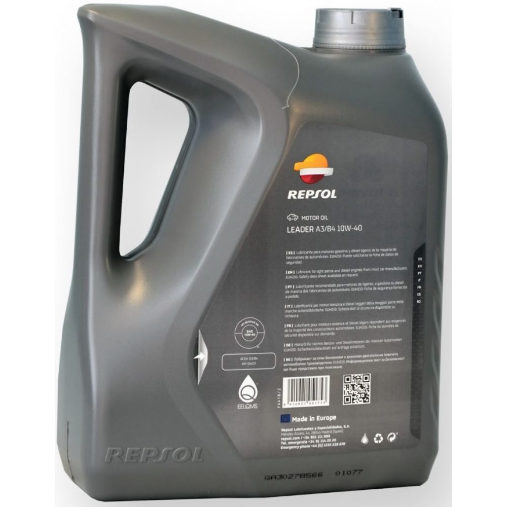 REPSOL RP LEADER A3/B4 10W-40- это высококачественное полусинтетическое моторное масло. Оно обеспечивает оптимальную защиту и долговечность двигателя, благодаря своей многофункциональности и стабильности к сдвигу. Масло подходит для большинства производителей автомобилей, требующих необслуживаемое моторное масло с длительным сроком службы. Оно обеспечивает чистоту двигателя, что положительно влияет на его срок службы. Масло имеет класс вязкости SAE 10W-40, что обеспечивает его высокую текучесть при низких температурах и улучшает запуск двигателя.