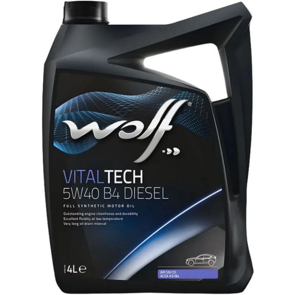 WOLF VITALTECH B4 DIESEL 5W-40 - полностью синтетическое моторное масло, созданное на основе тщательно отобранных высококачественных базовых масел с добавлением присадок последнего поколения. Оно разработано в соответствии с высокими требованиями производителей оборудования. Благодаря этому обеспечивается превосходная текучесть при низких температурах, очень низкое сопротивление при запуске, исключительный коэффициент вязкости и очень высокая термоустойчивость. Высокое качество позволяет достичь увеличенных интервалов замены в соответствии с особыми требованиями производителей.