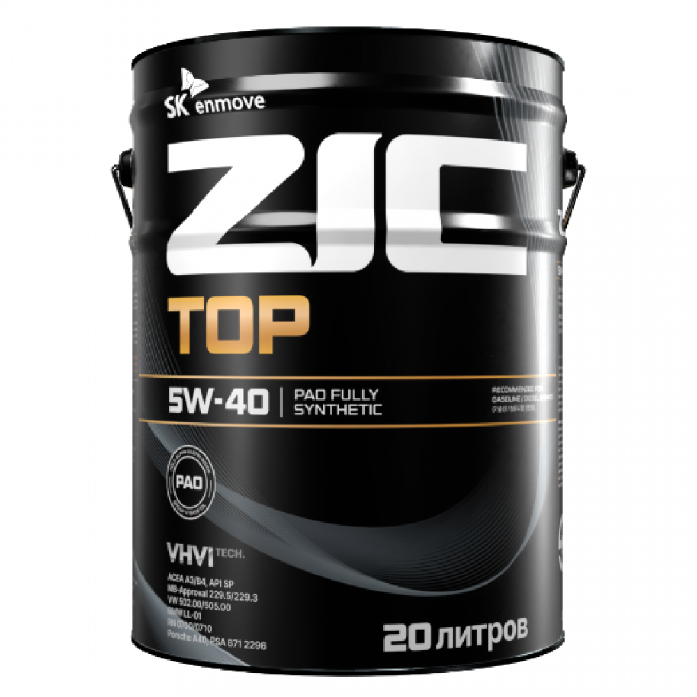 ZIC TOP 5W-40 - полностью синтетическое моторное масло для бензиновых и дизельных двигателей легковых автомобилей. Выполняет требования API SP: дополнительная защита от преждевременного воспламенения топливной смеси LSPI, защита от износа цепи ГРМ, улучшенная топливная экономичность. Произведено с использованием ПАО (полиальфаолефинов), собственного синтетического базового масла YUBASE Plus и современного пакета присадок.