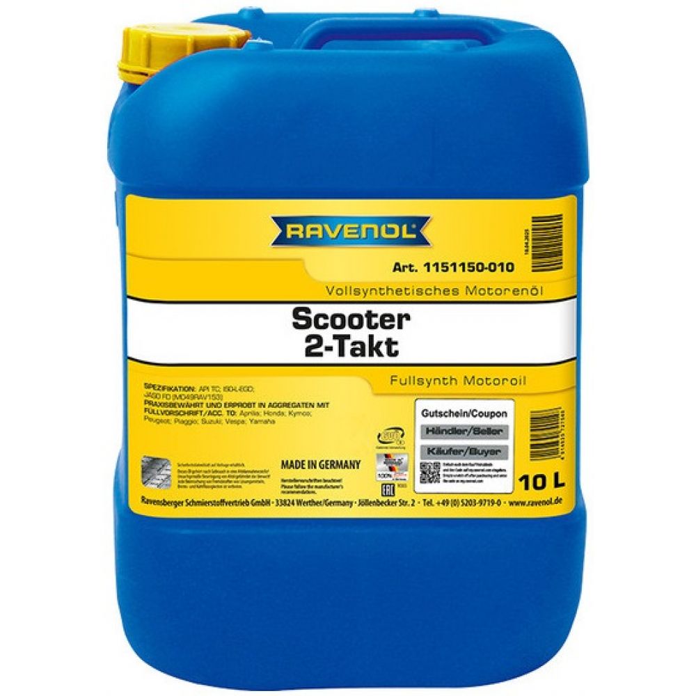 Моторное масло для 2T скутеров RAVENOL Scooter 2-Takt Fullsynth, 10л