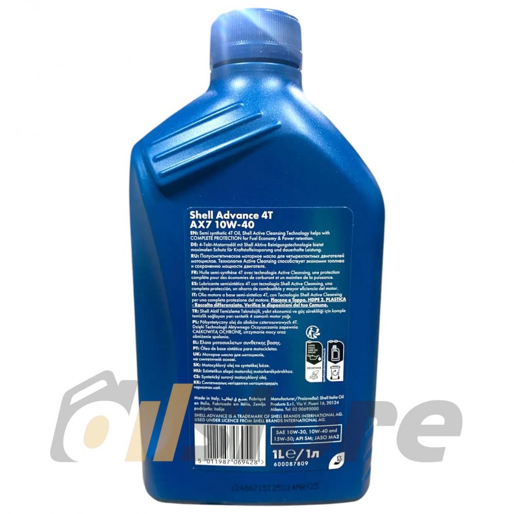 Shell Advance 4T AX7 10W-40 - моторное масло на основе синтетической технологии для 4-тактных мотоциклетных двигателей. Shell Advance 4T AX7 превосходит требования всех японских, европейских, индийских и китайских производителей мотоциклов.