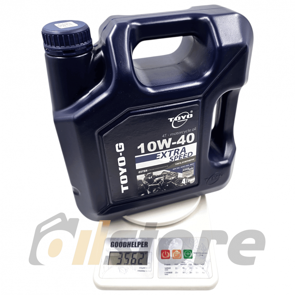 TOYO-G Extra Speed 4T 10W-40 - это полностью синтетическое высококачественное четырехтактное эфирное моторное масло, специально. Произведено с использованием присадок премиум-класса и эстеров для обеспечения защиты двигателя в экстремальных условиях езды, особенно на дальние расстояния.