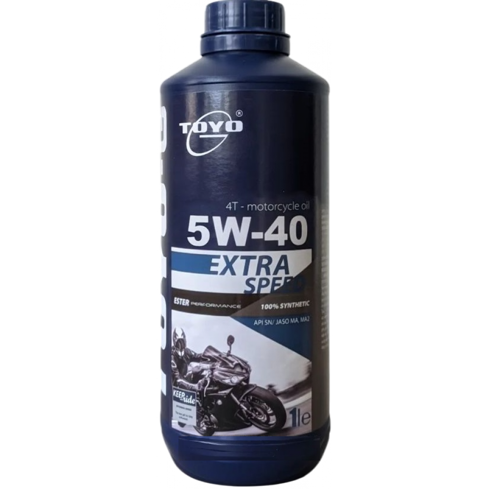 TOYO-G Extra Speed 4T 5W-40 - это высококачественное четырехтактное полностью синтетическое эфирное моторное масло премиум-класса, специально разработанное для всех высокопроизводительных мотоциклов и супербайков. Его также рекомендуется применять на мотоциклах типа скутер. Подобранный с использованием присадок премиум-класса для обеспечения защиты двигателя с высокой производительностью в экстремальных условиях езды, особенно для дальнобойщиков, он обеспечивает превосходную защиту от окисления, микротрещин на передачах и позволяет улучшить сцепление во время длительной поездки.