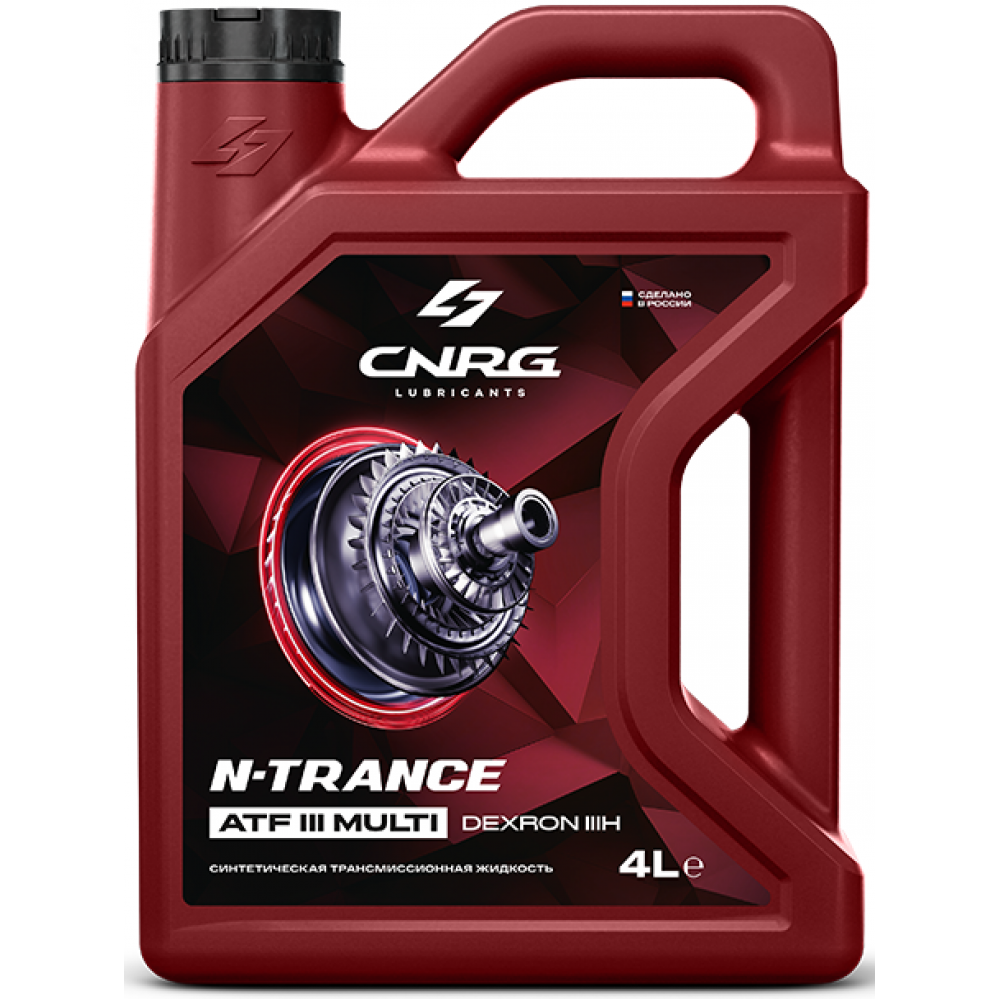 C.N.R.G. N-Trance ATF III Multi - всесезонная полностью синтетическая трансмиссионная жидкость с модифицированными фрикционными свойствами. Производится на основе высокоочищенных синтетических базовых масел и функционального пакета присадок. Высокий индекс вязкости и низкая температура застывания способствуют плавной работе трансмиссии в холодном климате. Обеспечивает плавное переключение, снижает шум и вибрацию. Сбалансированный пакет присадок помогает увеличить срок службы трансмиссии. Для контроля утечек окрашена в красный цвет.