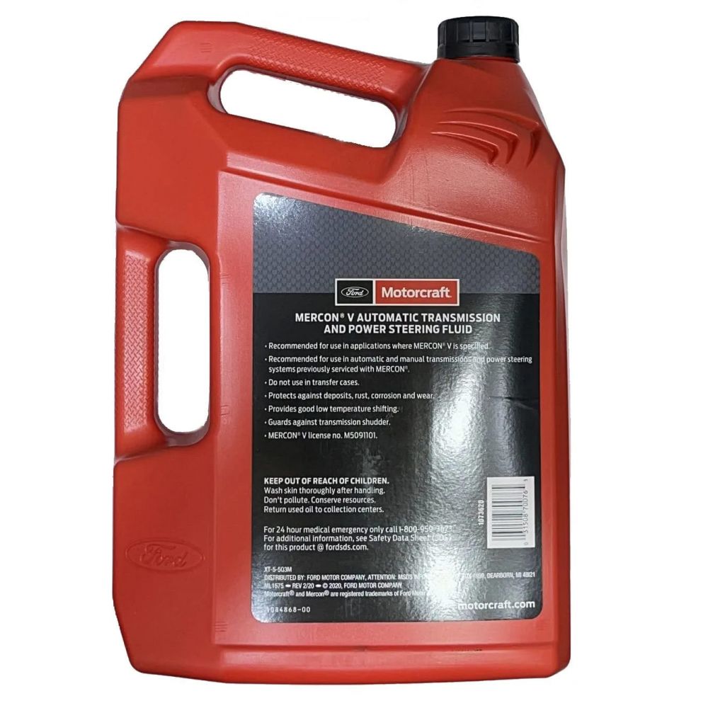 Ford Motorcraft ATF Mercon V - трансмиссионное масло премиум-класса, предназначенное для использования в АКПП автомобилей Ford, Lincoln и Mercury, а также в автомобилях, АКПП которых требуют использования масла с допуском Mercon V. Масло подходит для легковых, грузовых, пассажирских и узкоспециализированных транспортных средств, независимо от области применения и типа потребляемого горючего. Также, смазка сохраняет положительные свойства при заливке в гидроусилители руля, коробки передач с электронным управлением.