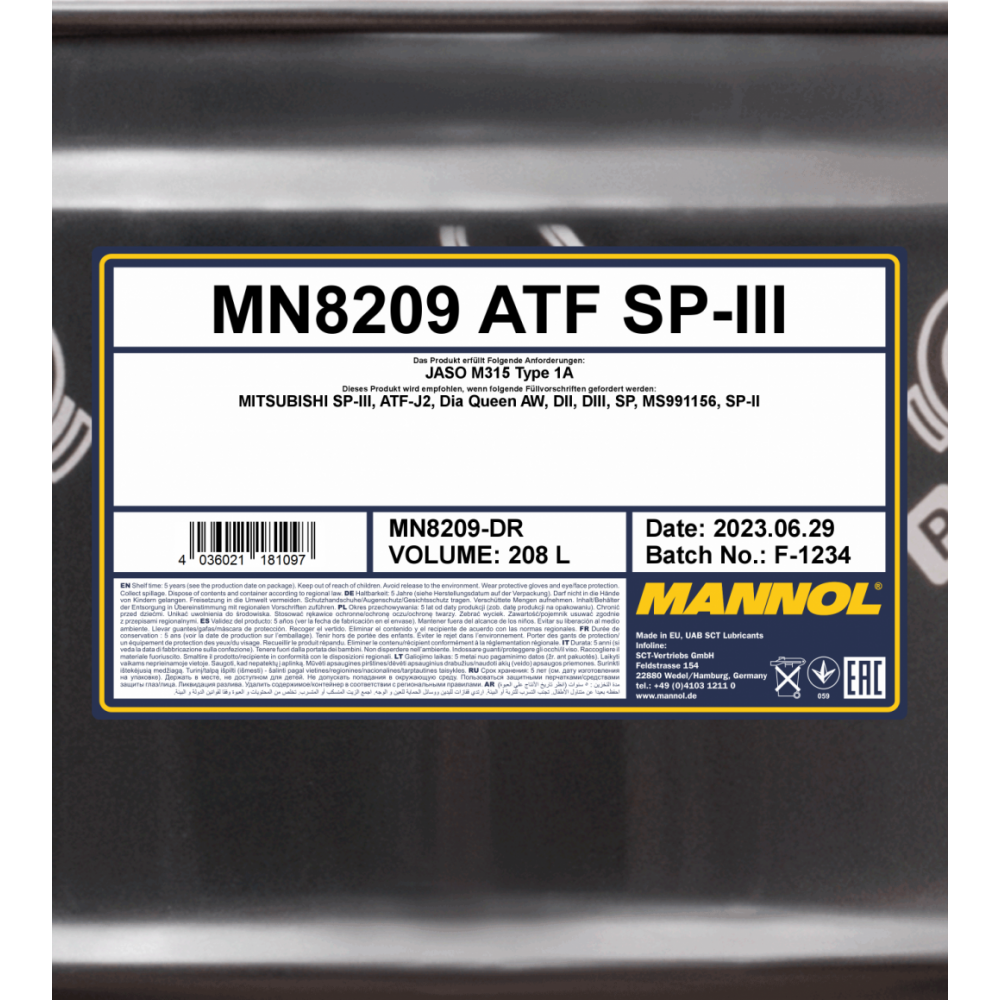 Трансмиссионное масло MANNOL 8209 ATF SP-III, 208л