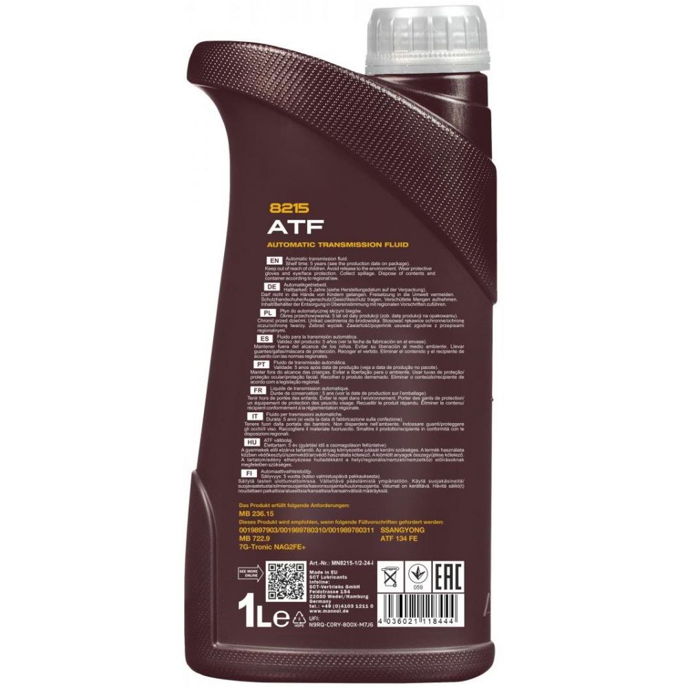 MANNOL 8215 ATF SPECIAL FLUID 236.15 - специальное низковязкое трансмиссионное синтетическое масло (ATF) для автоматических коробок передач (АКПП) автомобилей. Обеспечивает бесперебойную работу АКПП, гарантирует минимальный износ, продолжительный срок службы трансмиссий и экономию топлива.