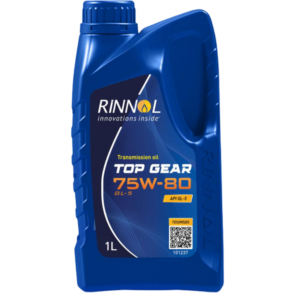 RINNOL TOP GEAR 75W-80 GL-5 - высокопроизводительное синтетическое автомобильное трансмиссионное масло для тяжелонагруженных передач. Использование качественных базовых масел, улучшенного пакета присадок и специальная формула обеспечивает самую эффективную защиту от износа при тяжелых условиях эксплуатации.