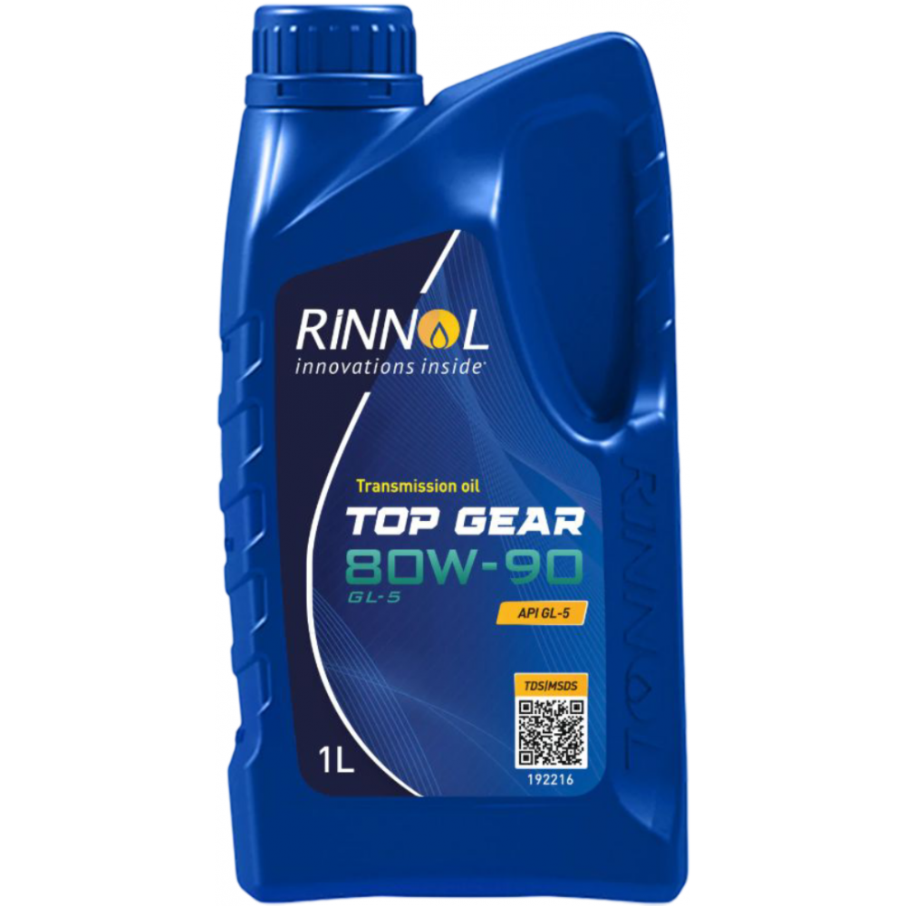 RINNOL TOP GEAR 80W-90 GL-5 - высокопроизводительное автомобильное трансмиссионное масло для тяжелонагруженных передач. Использование качественных базовых масел, улучшенного пакета присадок и специальная формула обеспечивает самую эффективную защиту от износа при тяжелых условиях эксплуатации.