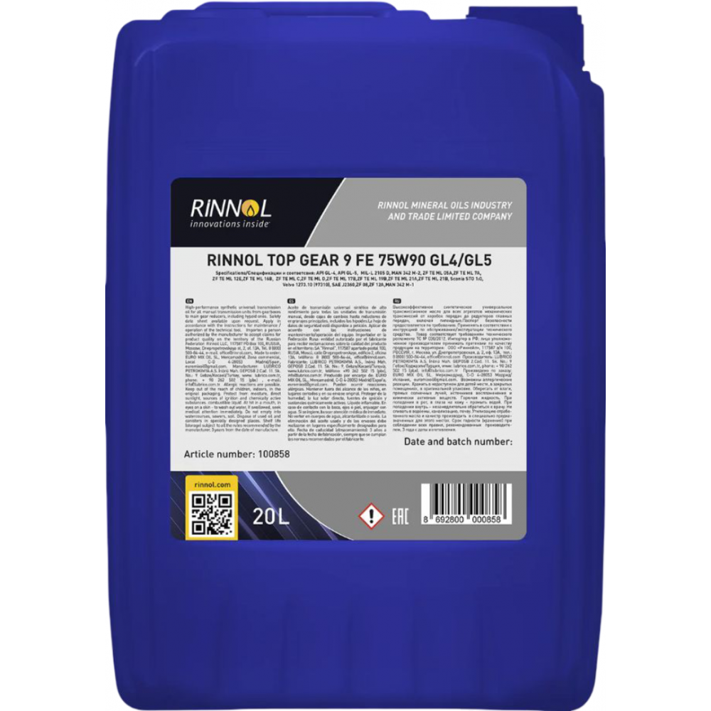 Трансмиссионное масло RINNOL TOP GEAR 9 FE 75W-90 GL-4/G-L5, 20л