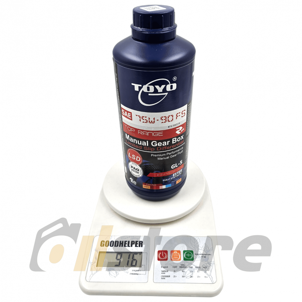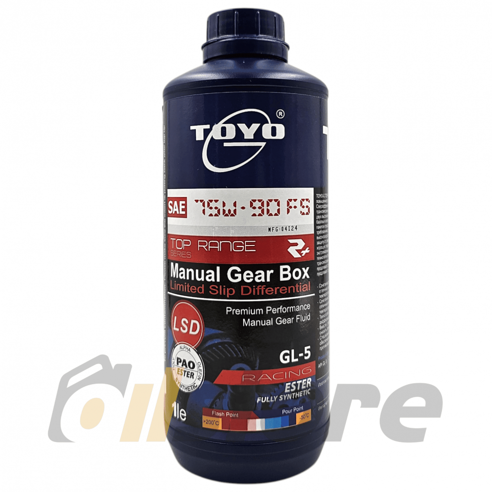 TOYO-G Top Range 75W-90 (R+), GL-5 - сверхэффективная, универсальная, термостойкая трансмиссионная жидкость, разработанная на основе комбинации двух высококачественных чистых синтетических и эфирных базовых компонентов. С усовершенствованным пакетом присадок, отвечающим последним техническим требованиям для современных высокопроизводительных и высокоскоростных автомобилей. Обеспечивает превосходную защиту от ржавчины, коррозии, окисления, износостойкость, хорошую термостойкость. Гарантирует отличную смазку в экстремальных условиях. Пакет присадок по специальной технологии приостанавливает образование шлама и отложений в трансмиссионном масле, уменьшает пенообразование, продлевает срок службы трансмиссионного оборудования и продлевает срок службы масла.
