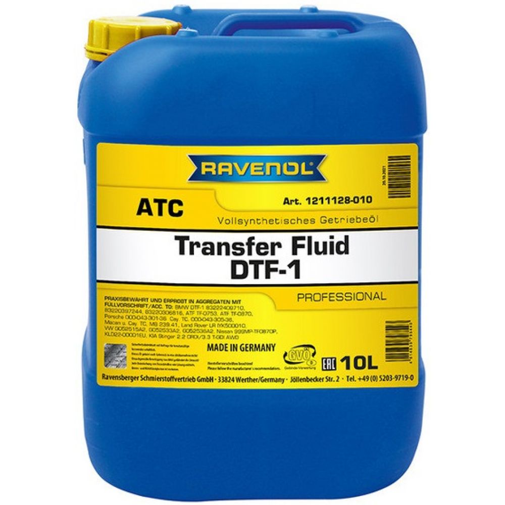 - Жидкость RAVENOL Transfer Fluid DTF-1 является сервисным продуктом, требующим профессионального подхода к выбору