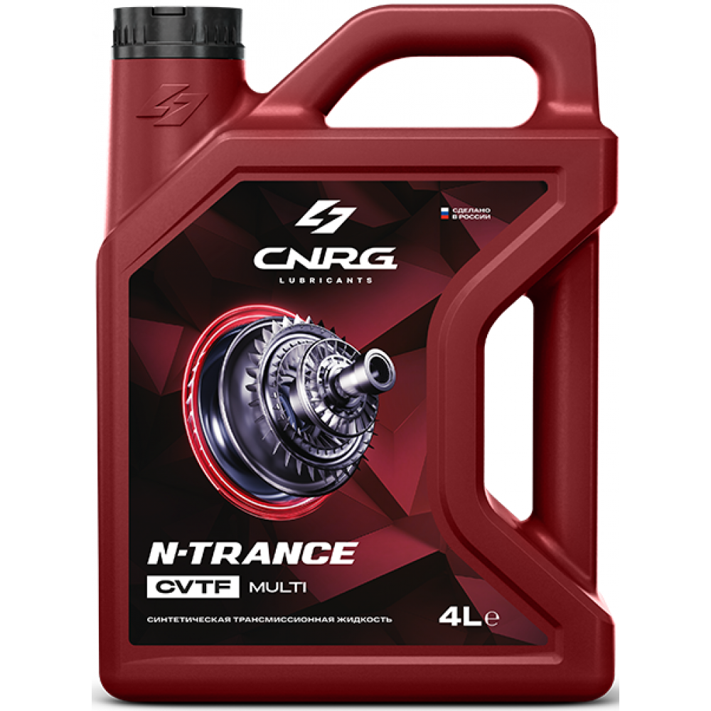 C.N.R.G. N-Trance CVTF MULTI - специальное синтетическое трансмиссионное масло, предназначенное для применения в бесступенчатых (вариаторных) коробках передач. Особенно рекомендуется для трансмиссий американских автопроизводителей GM, FORD, CHRYSLER азиатских автопроизводителей HONDA, HYUNDAI, KIA, MITSUBISHI, NISSAN, SUBARU, TOYOTA или европейских автопроизводителей AUDI, BMW, CITROËN, MERCEDES, PEUGEOT, RENAULT. Благодаря использованию синтетической основы обладает отличной стойкостью к окислению и образованию отложений, а также широким интервалом температур применения. Комплексный пакет присадок обеспечивает оптимальную работу пар трения («металл - металл» и «металл - неметалл»), надежное функционирование деталей зубчатых передач и гидротрансформаторов на протяжении всего интервала замены масла.
