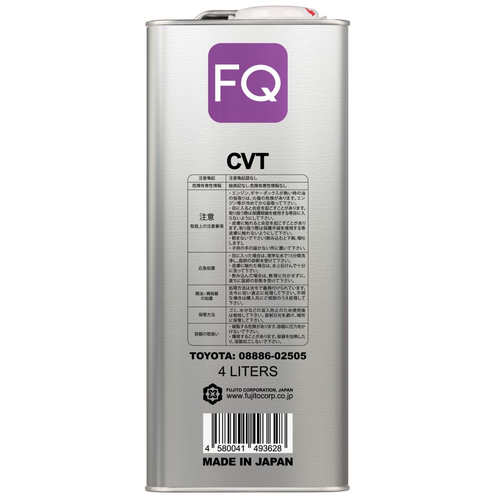 FQ CVT FE - полностью синтетическое трансмиссионное масло, разработанное специально для вариаторных коробок передач. Масло позволяет вариатору исключить вибрации и рывки при работе. Трансмиссионная жидкость FQ CVT FE совместима с жидкостью TOYOTA CVT FLUID FE и может применяться в автомобилях, для которых рекомендовано использование трансмиссионной жидкости CVT FLUID FE.