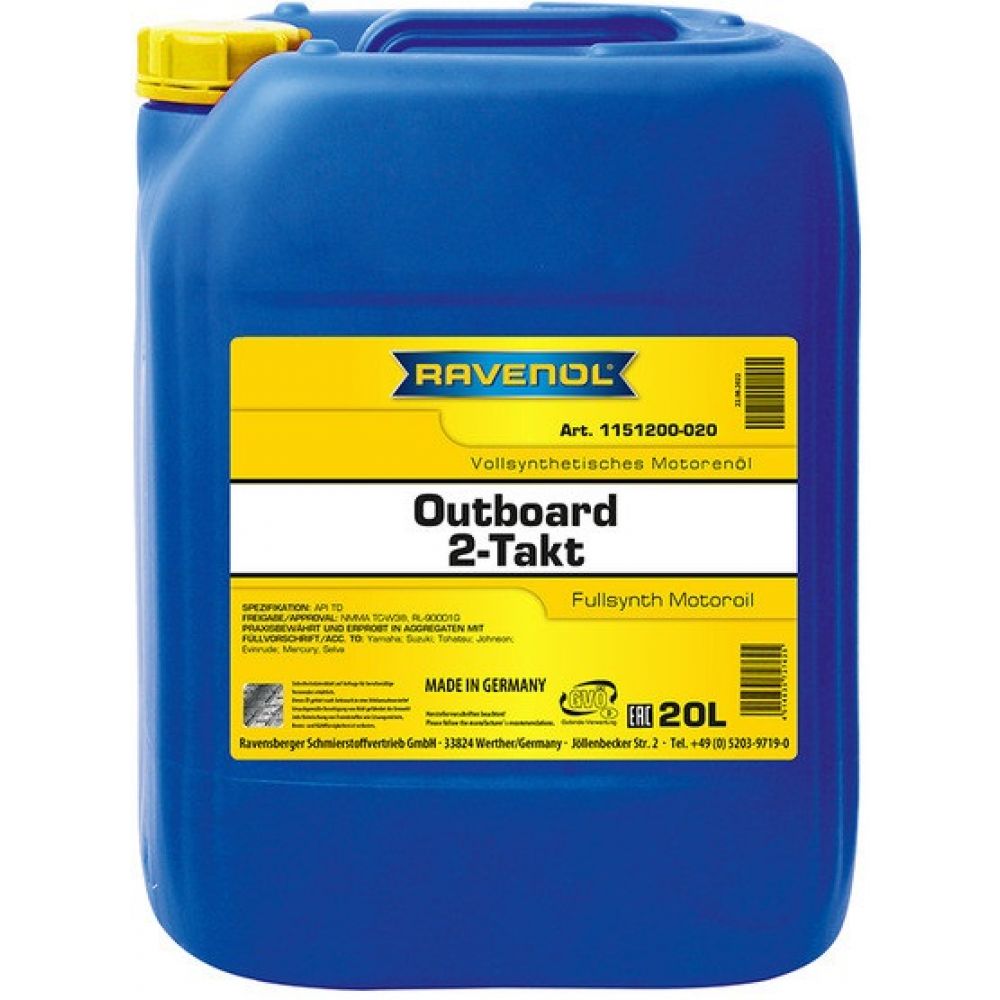 Моторное масло для 2Т лодочных моторов RAVENOL Outboardoel 2T Fullsynth, 20л