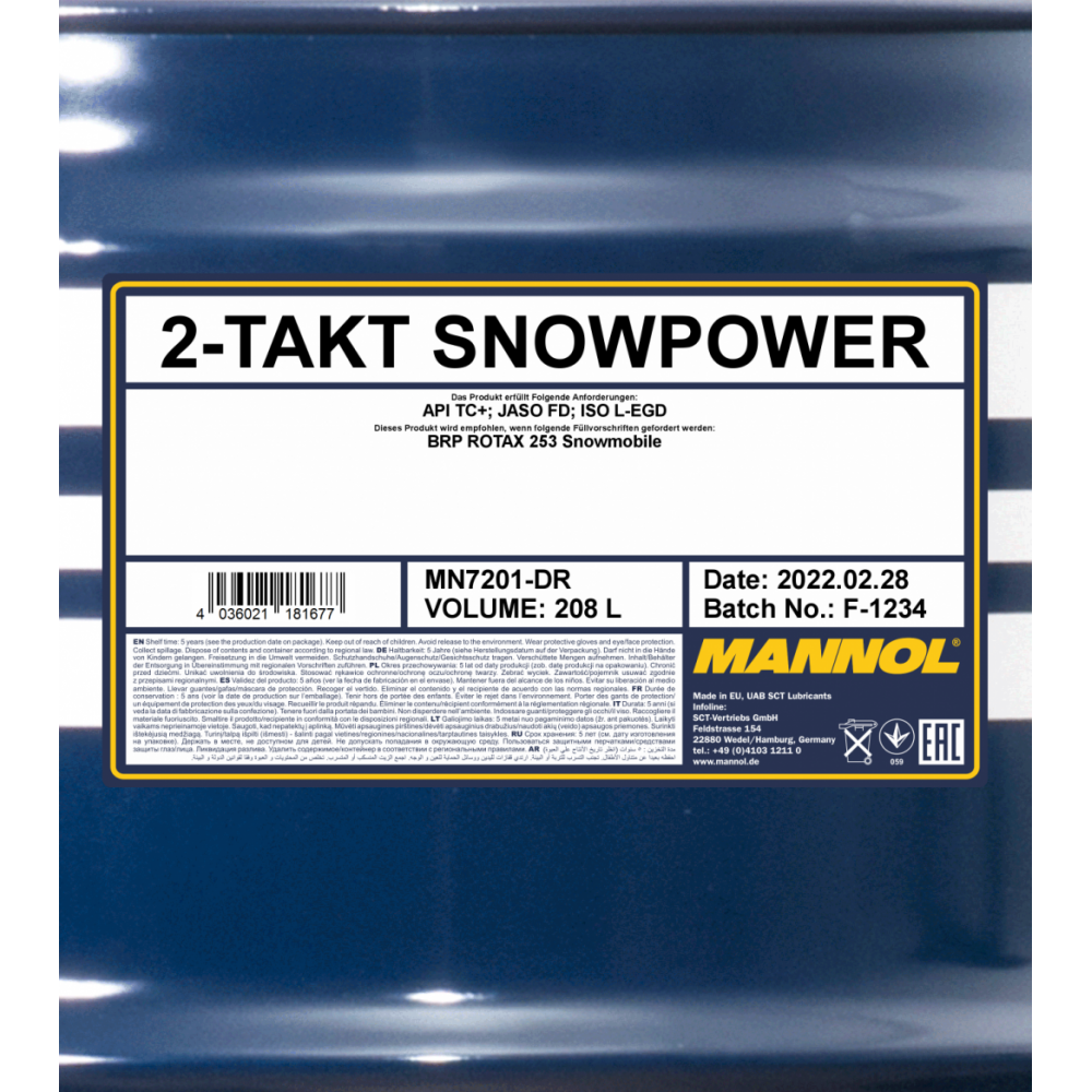 Моторное масло для снегоходов MANNOL 7201 2-TAKT SNOWPOWER, 208л