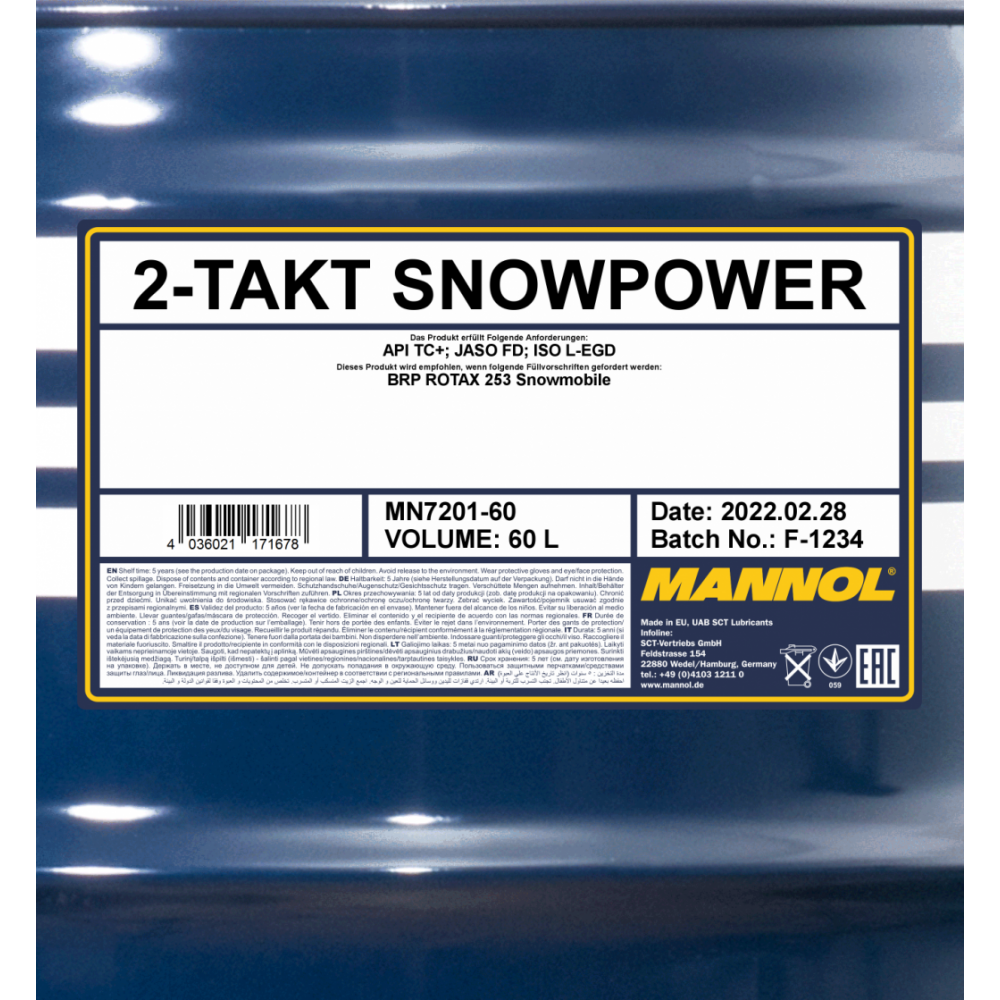 Моторное масло для снегоходов MANNOL 7201 2-TAKT SNOWPOWER, 60л